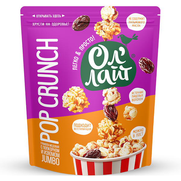 Гранола медовая с попкорном и изюмом Jumbo "Ол'лайт" 40г