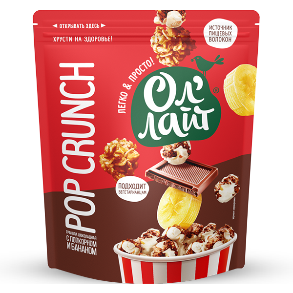 Гранола шоколадная с попкорном и бананом "Ол'лайт" 40г