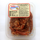 Сушено-вяленая пищевая рыбная продукция. "Кальмар тихоокеанский сушено-вяленый с перцем чили и кунжутом (РВАНЫЙ)" 300г