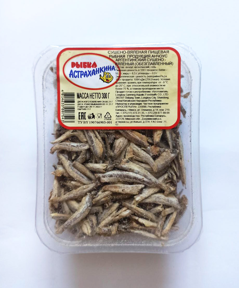 Сушено-вяленая пищевая рыбная продукция. Анчоус аргентинский сушено-вяленый (обезглавленный) 300 г