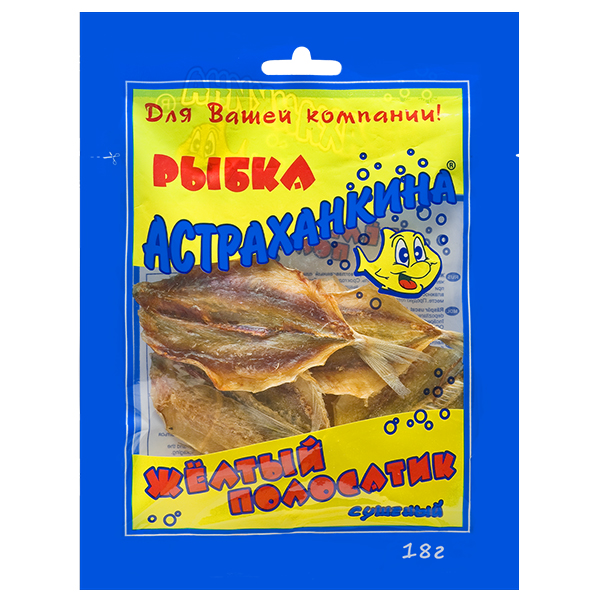 Сушено-вяленая пищевая рыбная продукция. "Желтый полосатик" желтополосый селар сушено-вяленый (пласт клипфискной разделки) ТМ Астраханкина, 18 г
