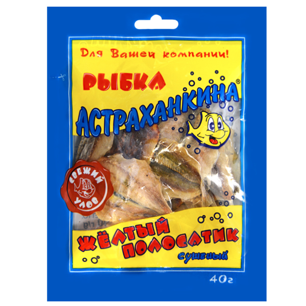 Сушено-вяленая пищевая рыбная продукция. "Желтый полосатик" желтополосый селар сушено-вяленый (пласт клипфискной разделки) ТМ Астраханкина, 40 г