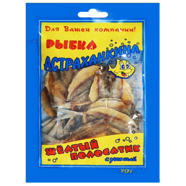 Сушено-вяленая пищевая рыбная продукция. "Желтый полосатик" желтополосый селар сушено-вяленый (пласт клипфискной разделки) ТМ Астраханкина, 70 г