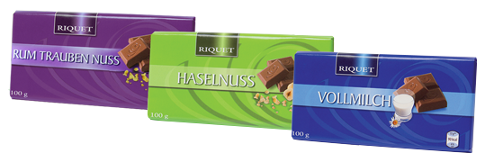 Молочный шоколад RIQUET Rum Trauben-Nuss с изюмом, лесным орехом и ароматом рома, 100 г